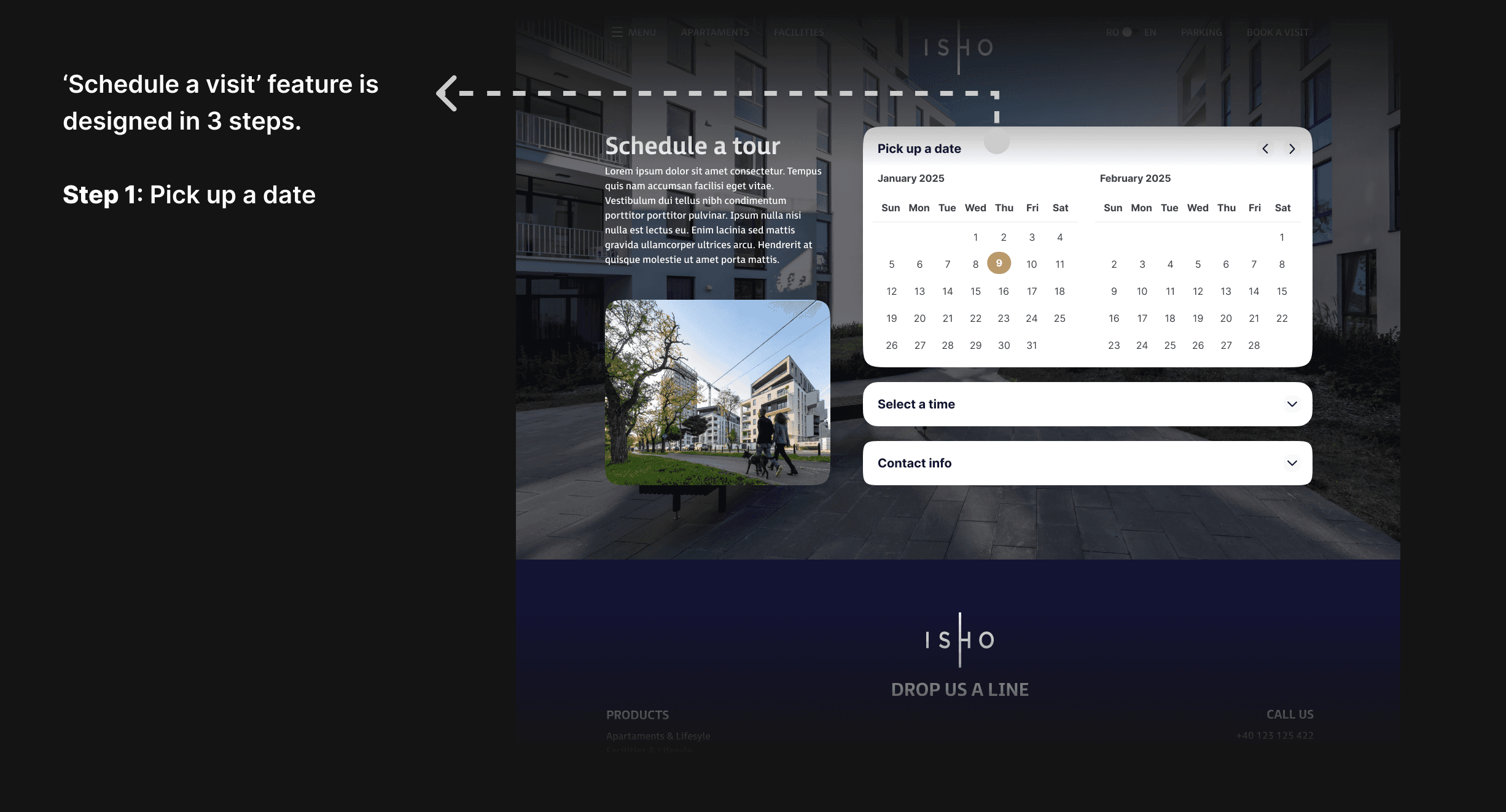 As the project comes to an end, after the design phase, I conducted user testing session with 15 participants from the target demographic (ISHO’s potential customers). The testing focused on key user flows, such as navigating the homepage, booking a visit to property, accessing a property information, and visual aspects.