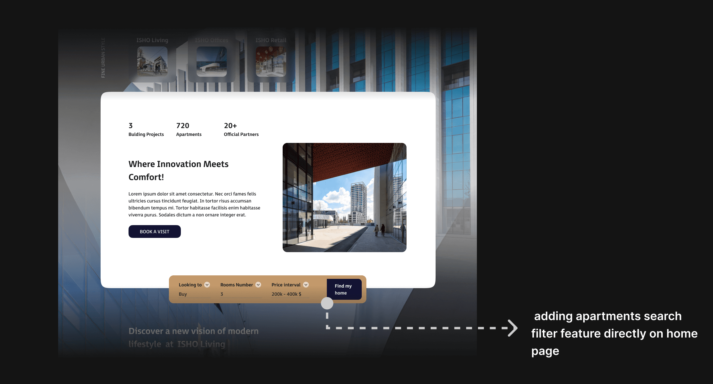 • I added multiple features such as 'find a new home', 'apartments filter', 'explore pages'.